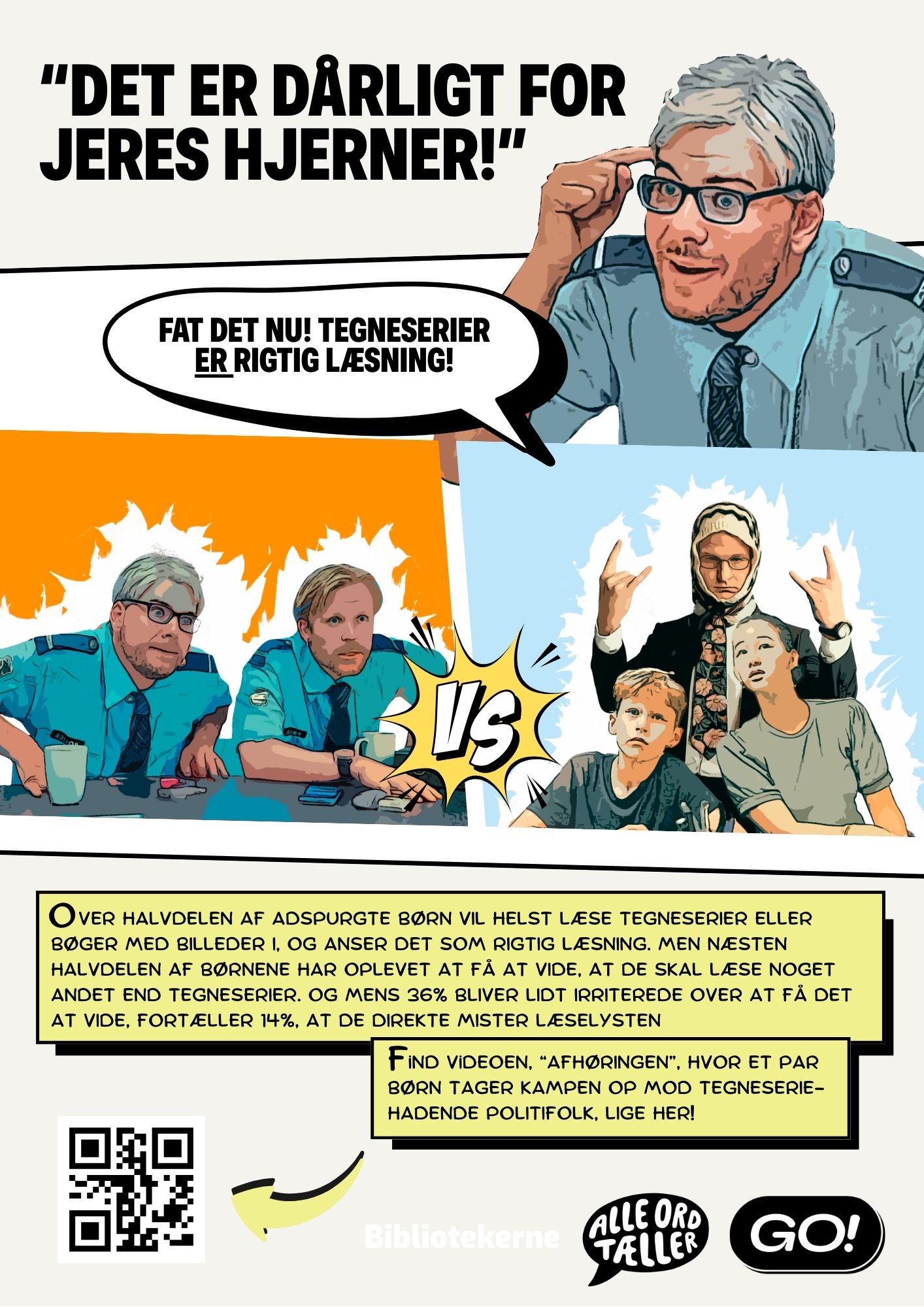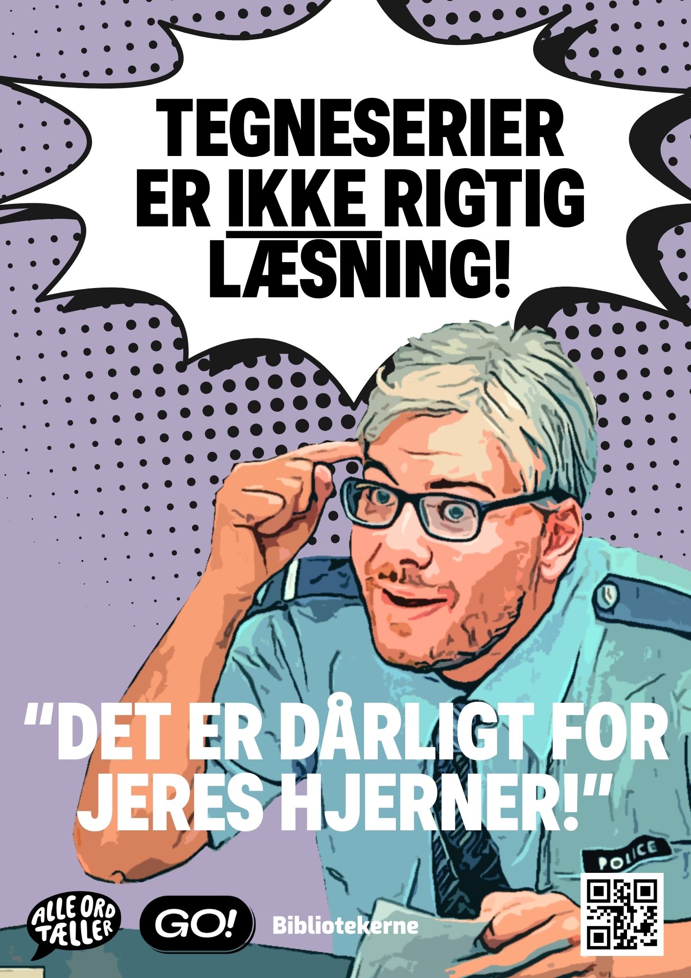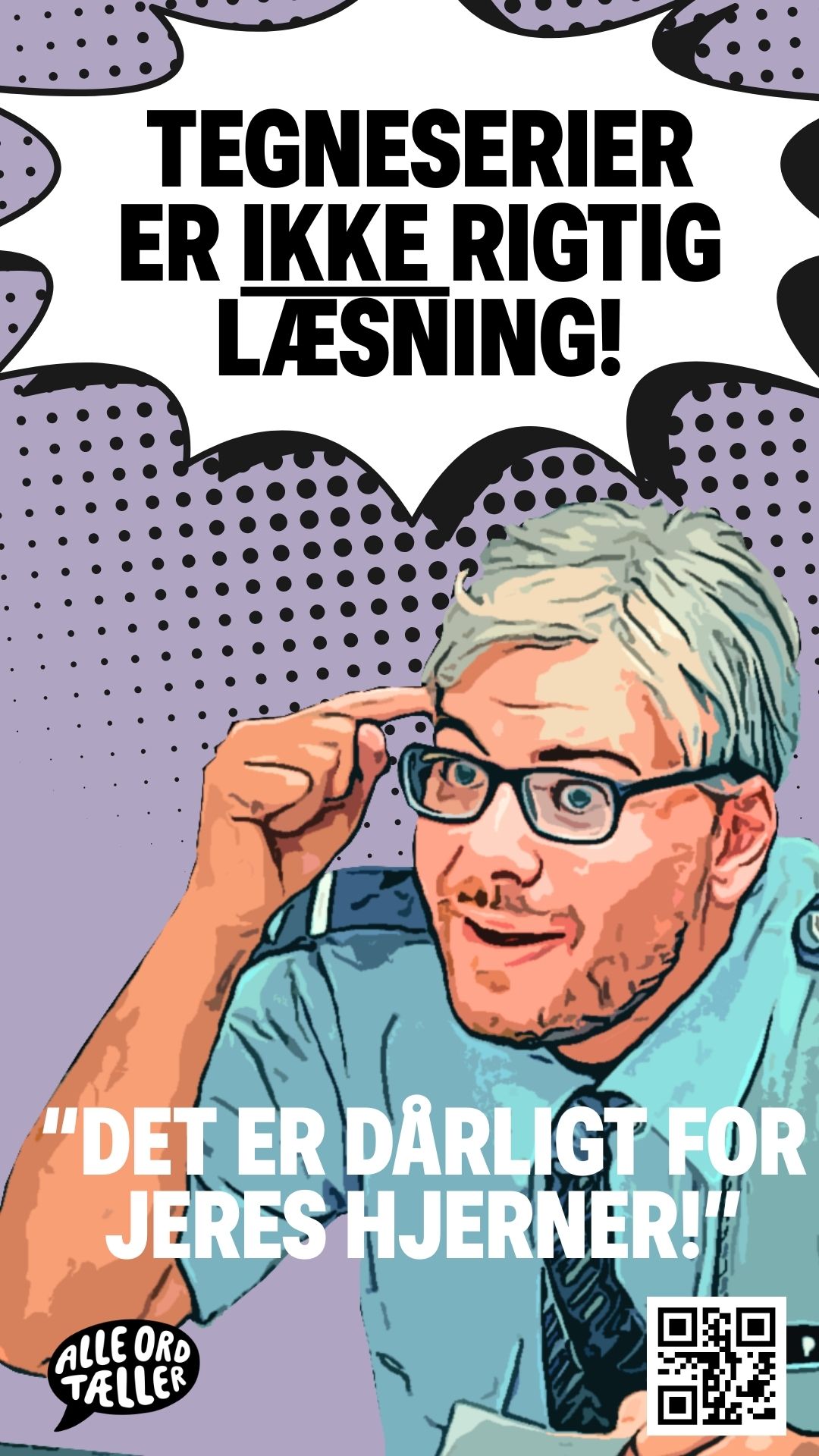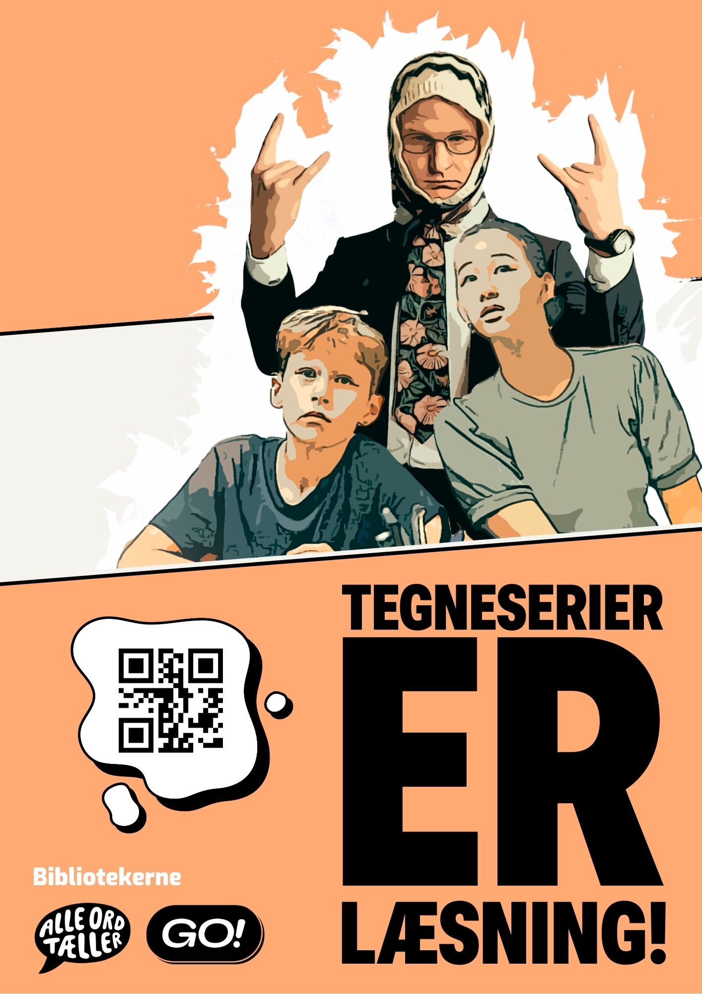 Her på siden finder du eksempler på og link til forskellige grafikker til print og digitalt brug i forbindelse med kampagnen "Tegneserier ER læsning!". Kampagnen kører fra uge 35 og må sættes op frem til d. 1. december 2025.